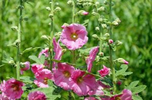 “Hollyhocks remind us that slow steady growth can lead to the tallest blooms.”