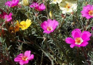 Portulaca, also called moss rose, is a tough little ground cover that blooms daily. It thrives even in poor, dry soil and full sun, adding bright pops of color effortlessly.